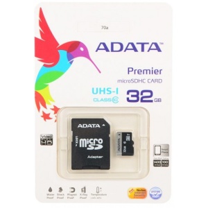 Micro SecureDigital 32Gb A-DATA AUSDH32GUICL10 A1-RA1 (MicroSDHC Class 10 UHS-I, SD adapter)